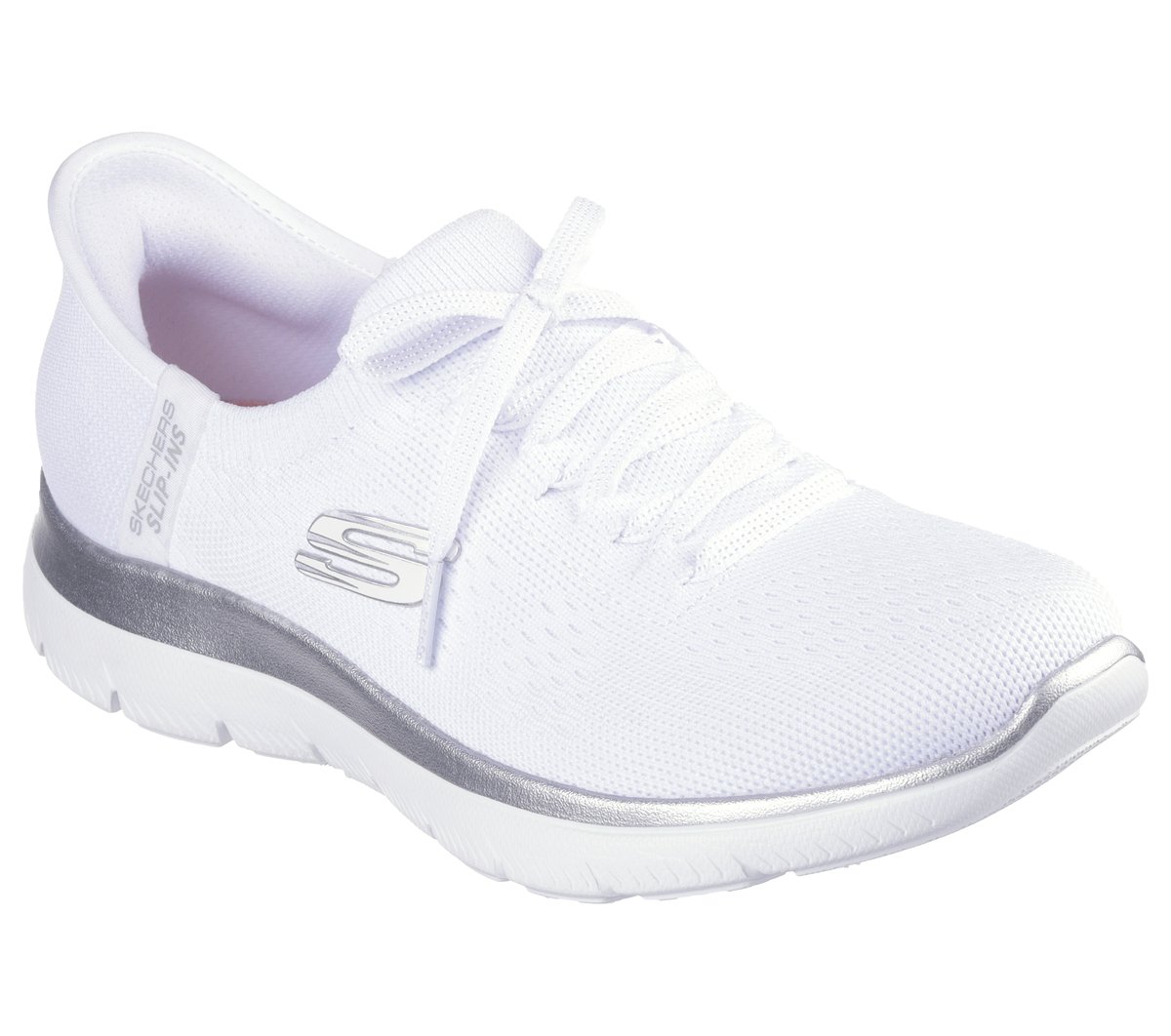 Pick up the pace with increased ease-of-wear and platinum comfort wearing Skechers Hands Free Slip-ins®: Summits – Night Chic. Designed with our Heel Pillow®, this vegan style features a Stretch Fit® engineered knit upper with fixed laces, metallic midsole trim and a cushioned Skechers Air-Cooled Memory Foam® comfort insole.