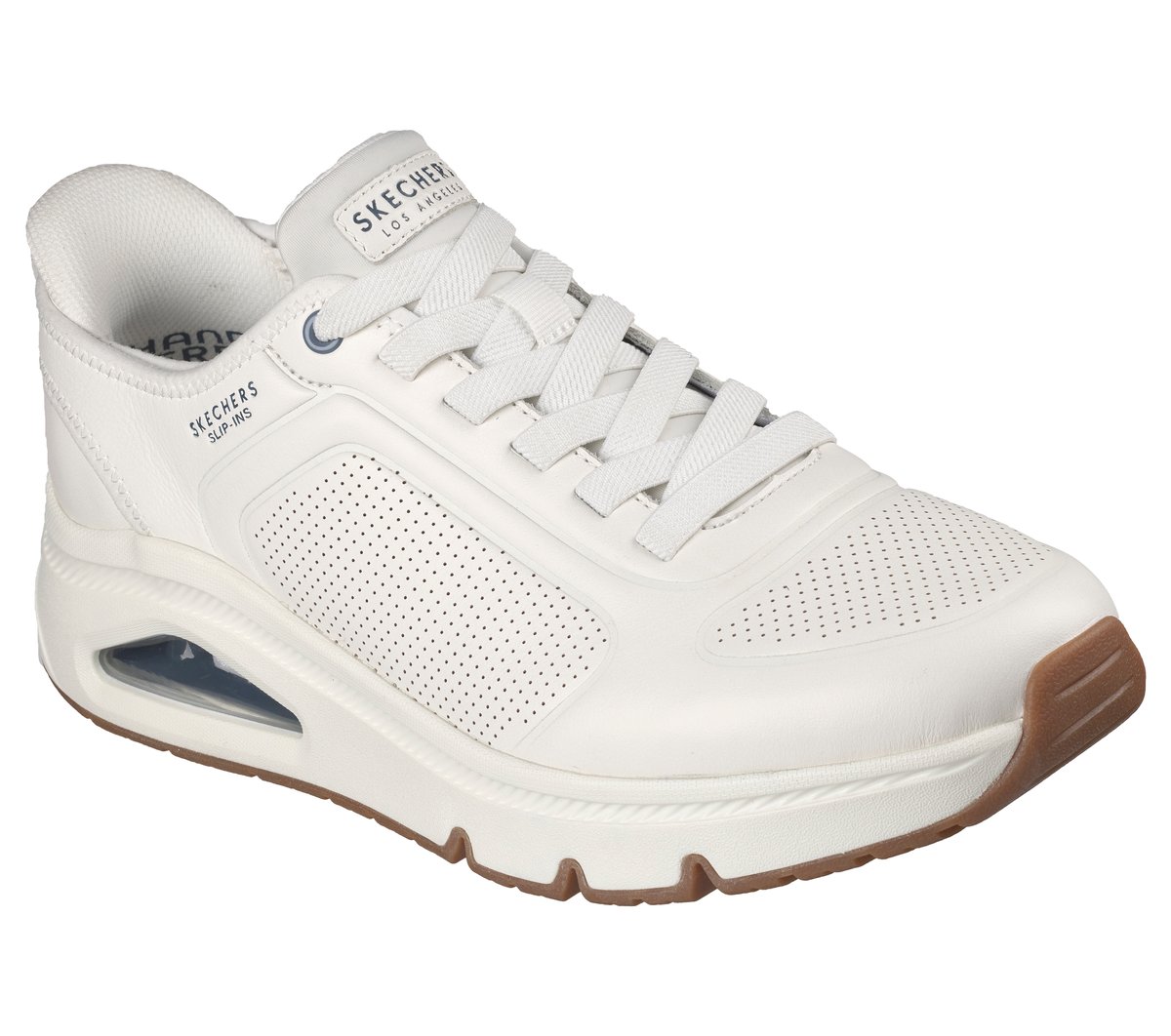 Feel light on your feet in air-cushioned comfort with Skechers Street™ Hands Free Slip-ins®: UNO Icon – Idolizing. Designed with our Heel Pillow®, this slip-on fashion sneaker features a monochromatic perforated leather upper with a Skechers Air-Cooled Memory Foam® insole and a Skech-Air® visible airbag midsole.