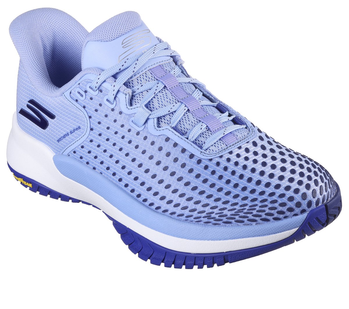 Take your game to the next level with Skechers Hands Free Slip-ins®: Viper Court Elite. Created specifically for the competitive Pickleball athlete, this slip-on court shoe has been granted the APMA Seal of Acceptance and features our exclusive hands-free Heel Pillow® with an athletic mesh and screen print upper, removable Arch Fit® insole, and lightweight ECO FLIGHT™ cushioning. The design is complete with a Goodyear® Rubber Performance Outsole built for increased durability and control on the Pickleball court surface.