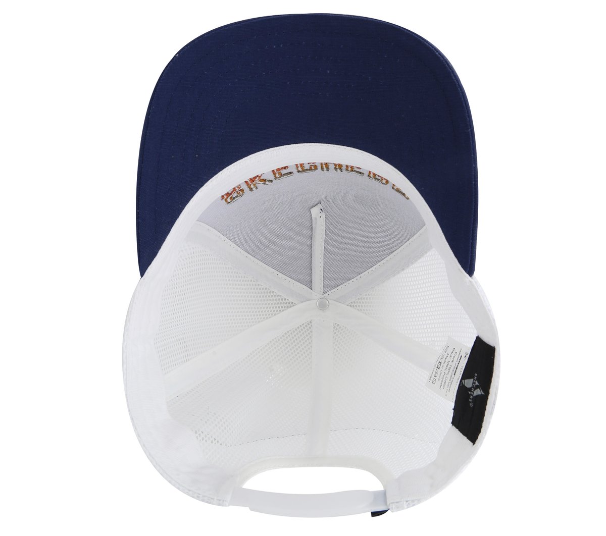 Add a dash of style and cool comfort with the Skechers Textured Logo Trucker Hat. Soft fabric and mesh fabric in an adjustable trucker cap design with textured embroidered four color logo design.