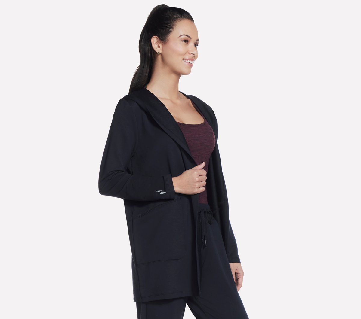 Wrap yourself in soft comfort and versatile style with the essential Skechers Restful Hoodigan. This hooded cardigan features a SKECHLUXE™ soft and silky French terry knit fabric, open on-seam pockets, long sleeves, and a relaxed slouchy fit.