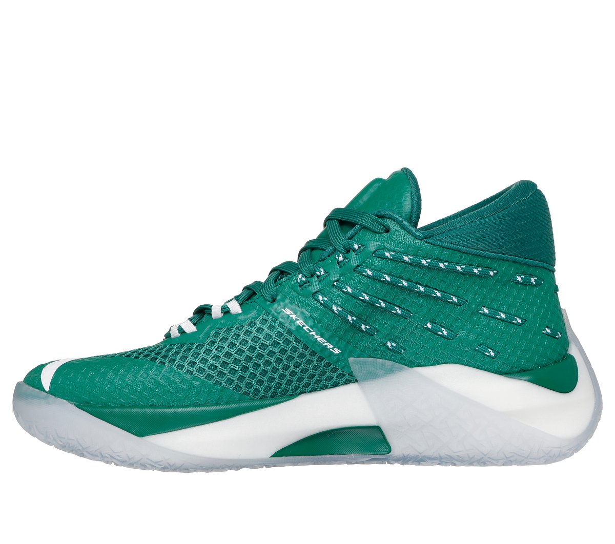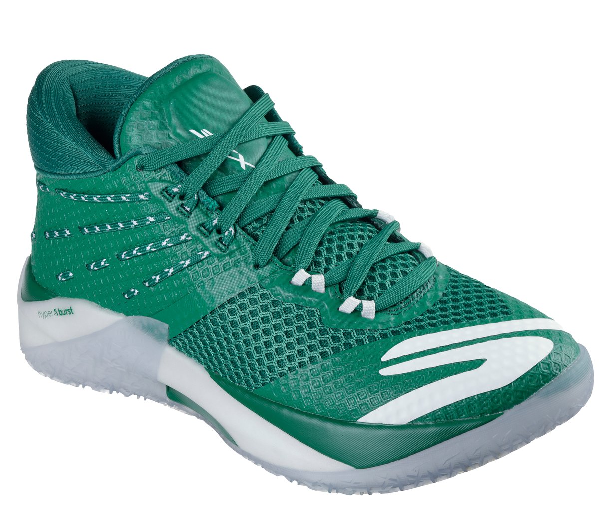 Take your game to the next level with Skechers Basketball®: SKX REIGN™, footwear engineered to promote a quick first step, speed, and intense traction. This mid-top lace-up features a comfort collar, lock-down heel, and a strategically-placed mid-foot wrap for players who prefer more stability. The design is enhanced with a resilient Skechers HYPER BURST PRO™ sock liner, a dual-density Skechers HYPER BURST® midsole, a carbon-infused plate for explosive take-offs, and a Goodyear® Performance Outsole for superior grip and long-lasting durability.