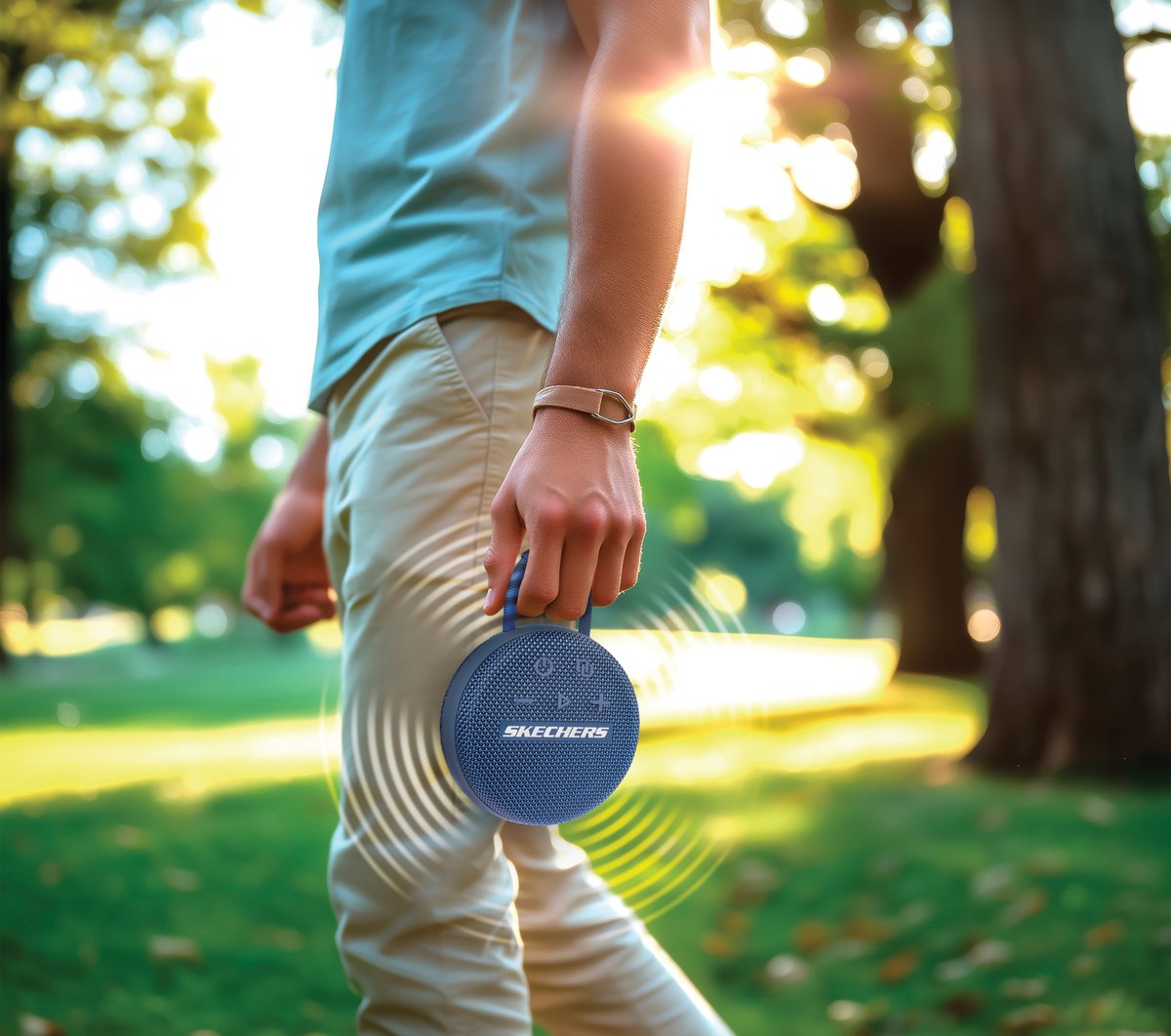 Bring the beat wherever you go with Skechers Sport Loop Wireless Speaker. This water-resistant Bluetooth speaker delivers crisp, high-definition sound and effortless control with a five-button interface. Compatible with iPhone and Android, this device is your go-to for music on the move.