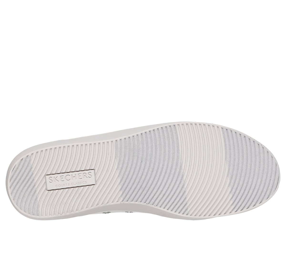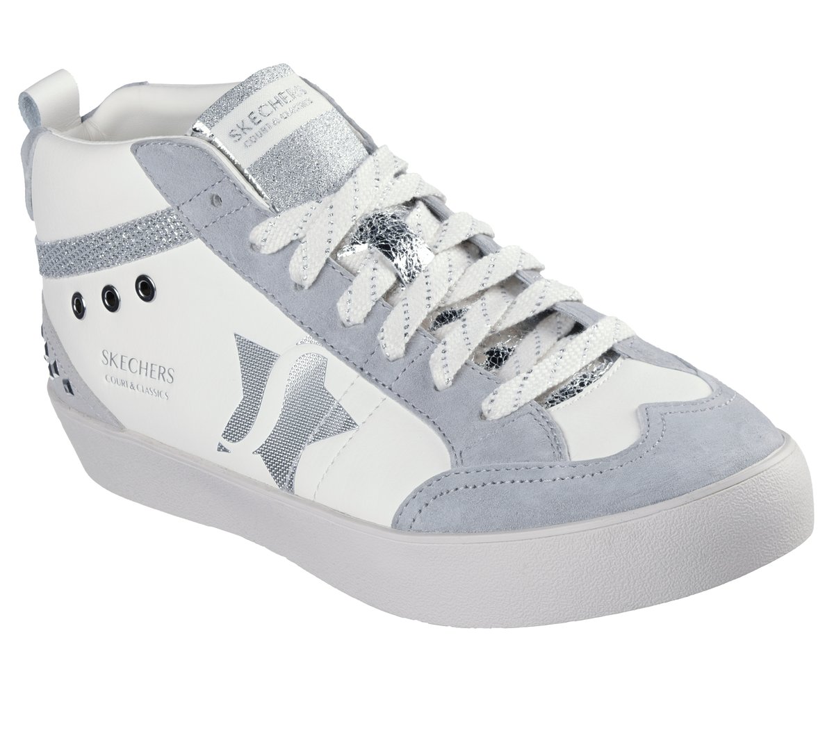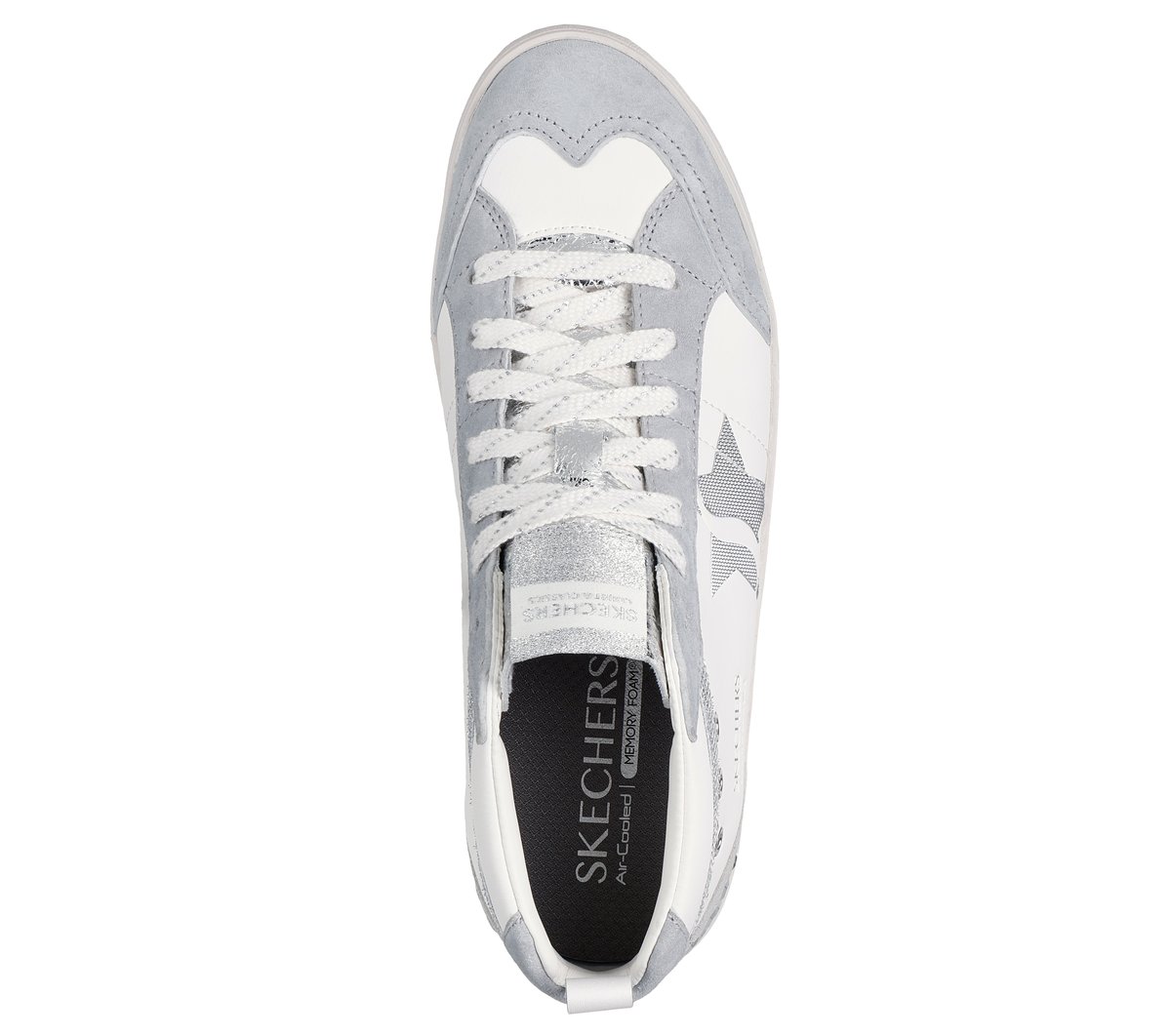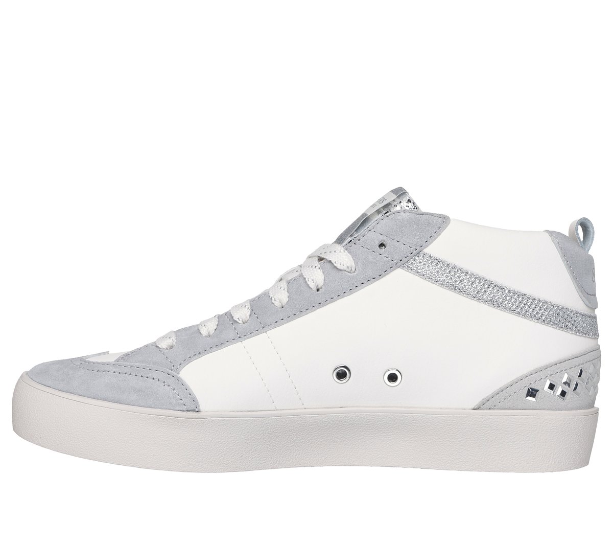 Find your star power style with uncompromising comfort wearing Skechers Strand Star – Studded Step. This mid-top fashion sneaker features a pigskin leather upper with heel studs, a hidden wedge court-style midsole, lace-up front, debossed metallic star, and a Skechers Air-Cooled Memory Foam® cushioned insole.