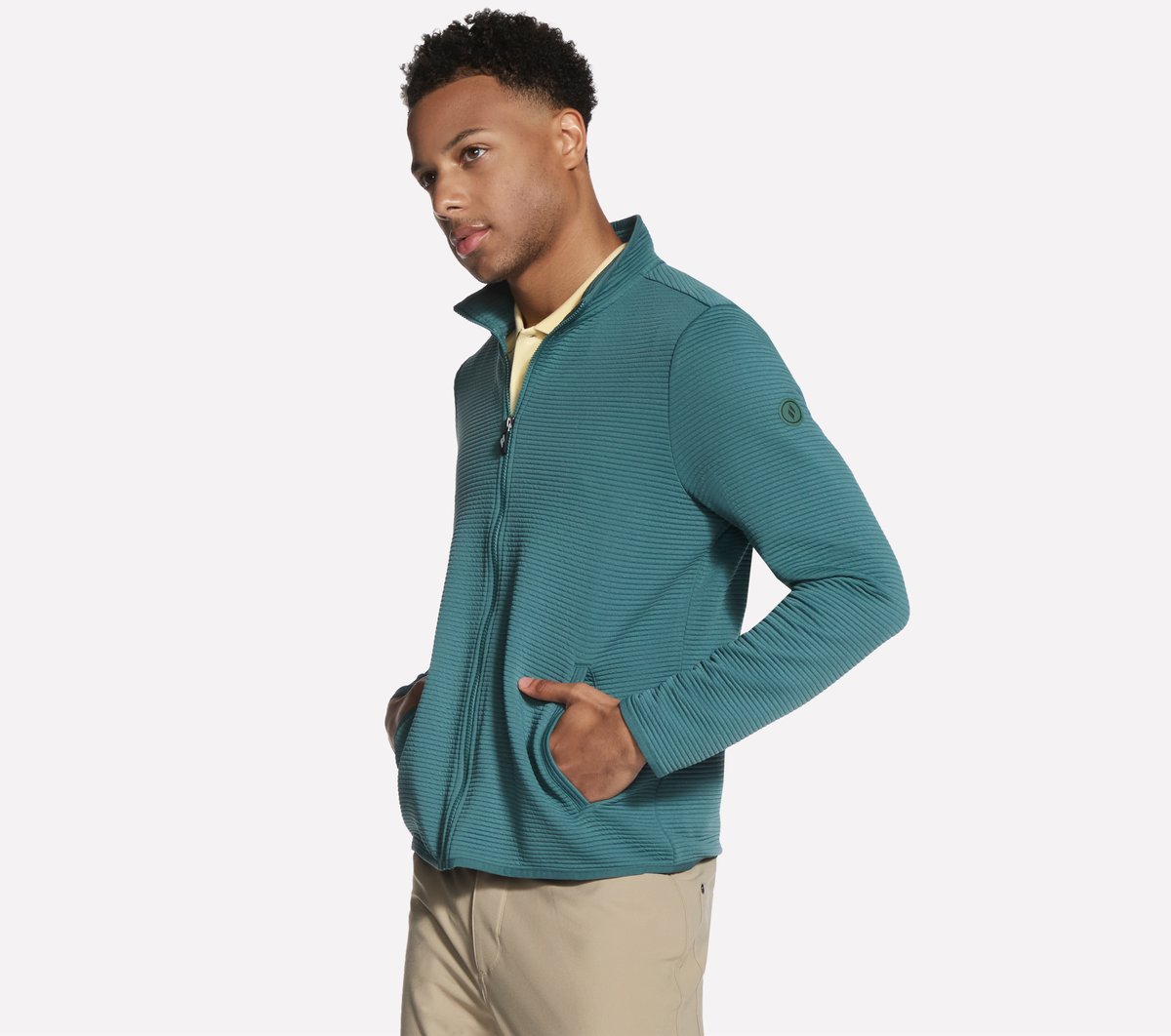 Zip into soft and warm comfort with the Skechers Hoodless Hoodie™ Ottoman Jacket. This zip-up outerwear design features our SOFT-KNIT™ jersey rib with the perfect amount of stretch and front hand pockets.