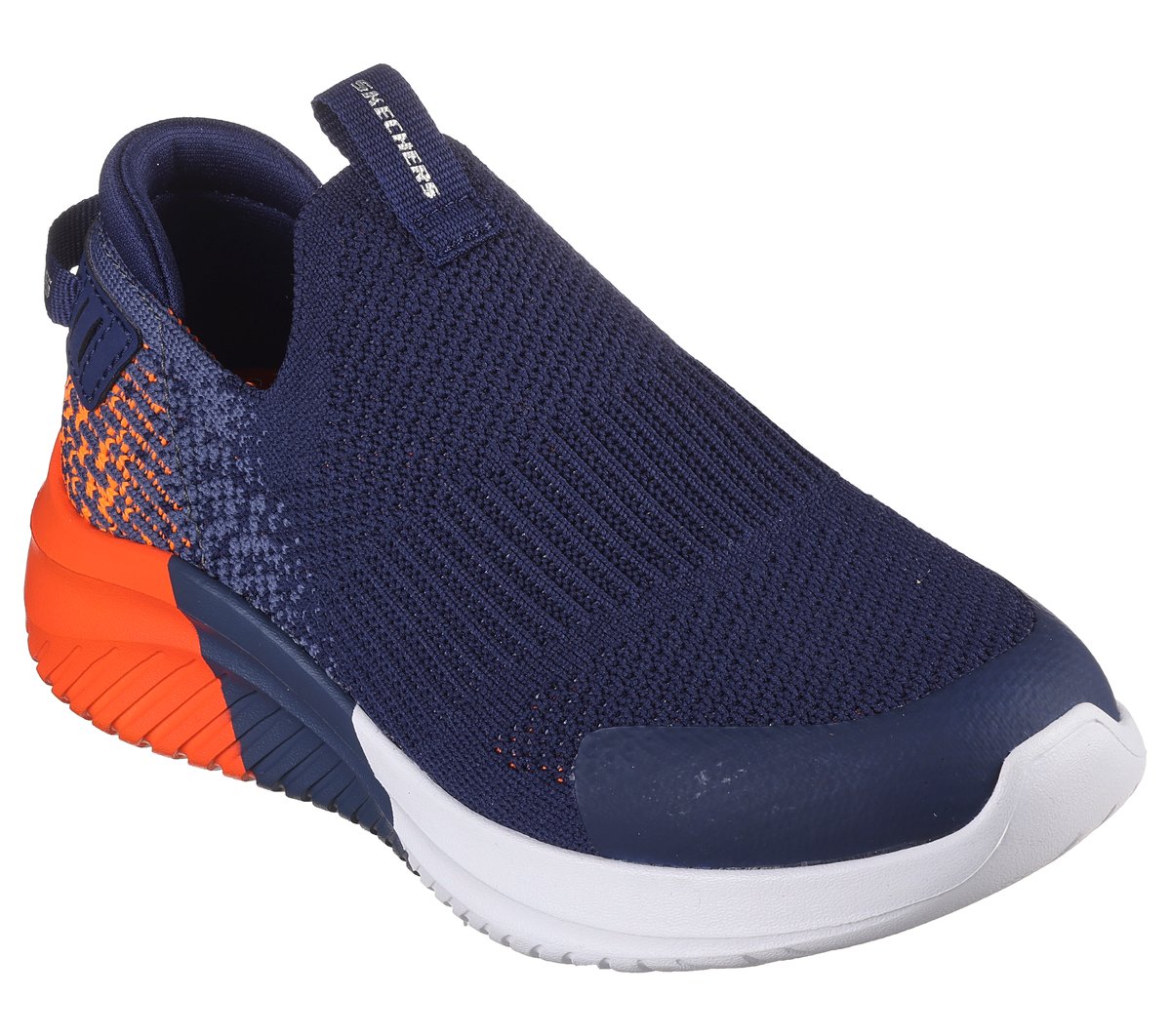 Bring the action wearing Skechers Ultra Flex 3.0 – Vektron. This sporty lightweight design features an engineered mesh Stretch Fit® upper with a color blocked heel and midsole, Skechers Air-Cooled Memory Foam® insole, and branded heel strap.