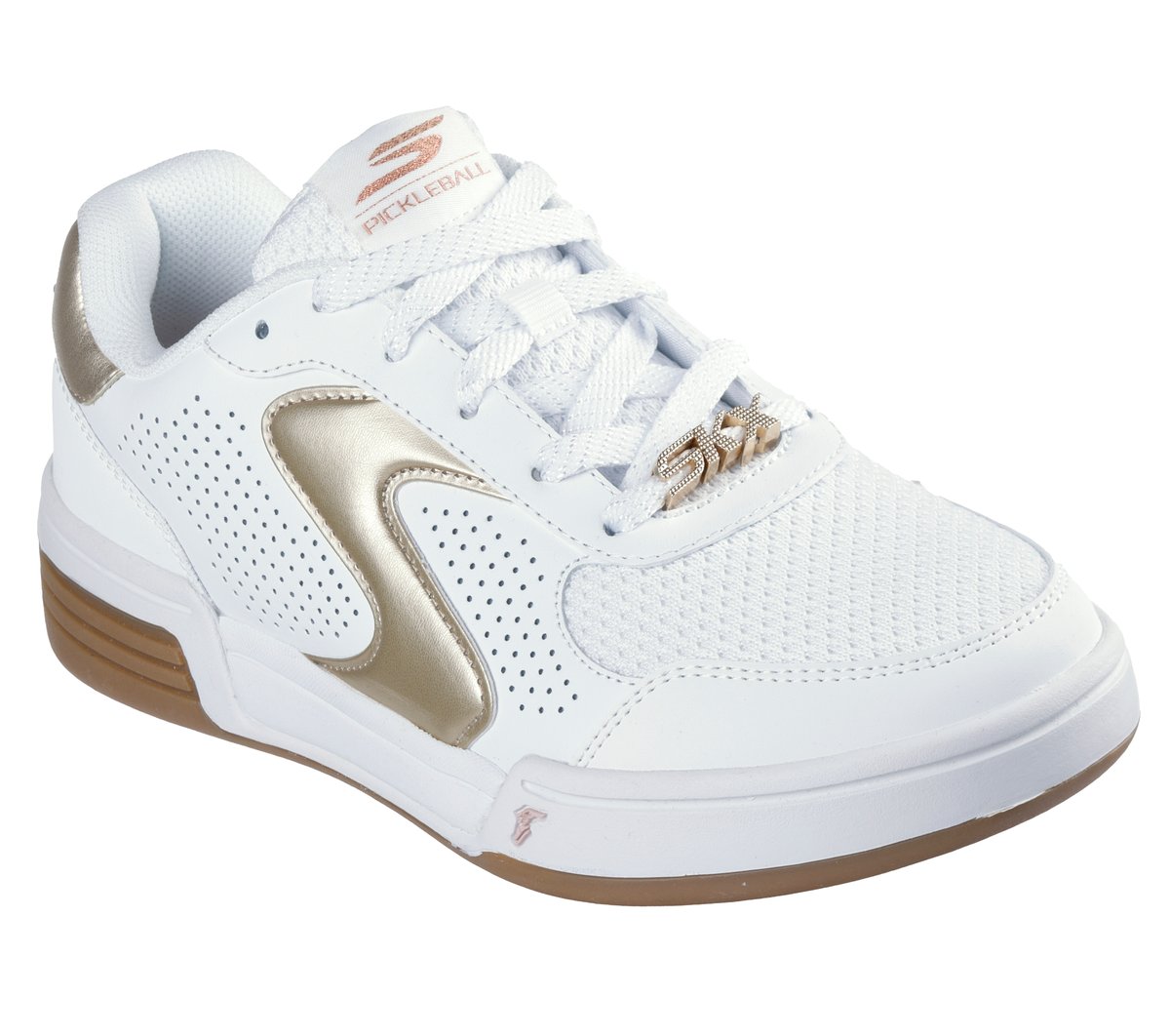 Elevate your game with maximum comfort wearing Skechers Viper Court Classic. This performance court design features a perforated leather and mesh upper with metallic quarter ‘S’ logo, a lightweight Move Foam™ insole, plus a Goodyear® Performance Outsole built for increased durability and control on the pickleball court’s surface.