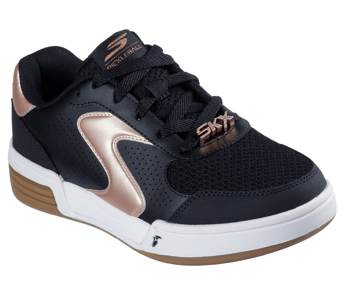 Elevate your game with maximum comfort wearing Skechers Viper Court Classic. This performance court design features a perforated leather and mesh upper with metallic quarter ‘S’ logo, a lightweight Move Foam™ insole, plus a Goodyear® Performance Outsole built for increased durability and control on the pickleball court’s surface.