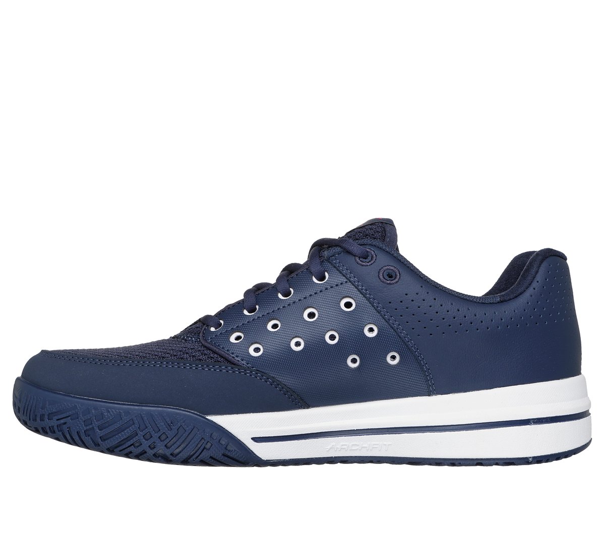Elevate your game with unstoppable comfort wearing Skechers Viper Court Luxe. This performance court lace-up features a leather and synthetic upper with a removable Arch Fit® insole and lightweight ULTRA GO® cushioning. Complete with a Goodyear® Rubber Performance Outsole built for increased durability and control on the court surface.
