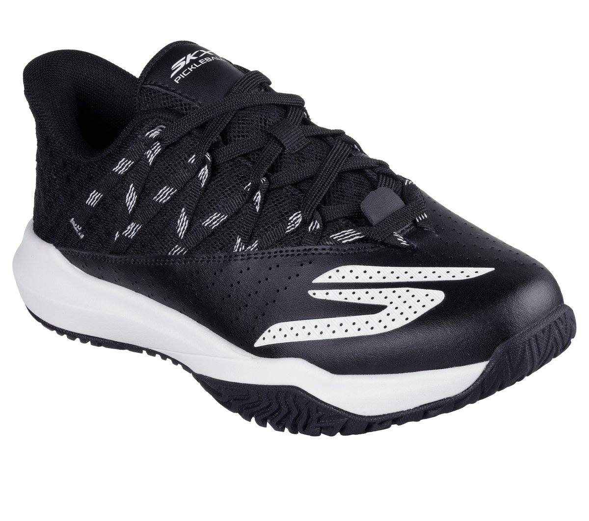 Step up your game with Skechers Viper Court Rally™. This lace-up Pickleball shoe features a mesh and perforated leather overlay upper with a lightweight Move Foam™ insole. The design is complete with a Goodyear® Gold compound outsole that’s built for increased durability to allow the elite player to perform controlled slides specifically on the pickleball court surface.