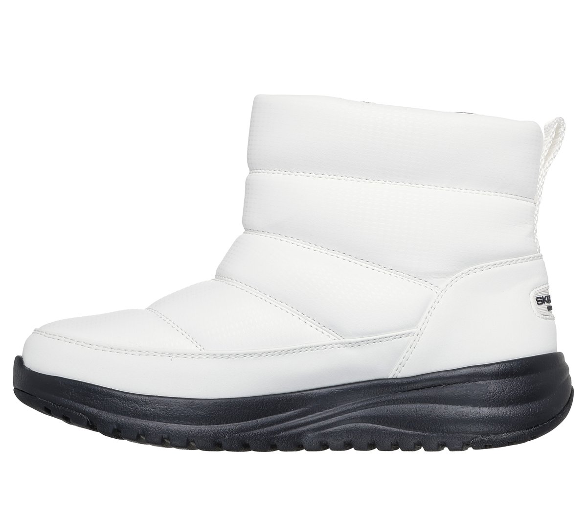Stay comfy and cozy throughout chilly season with Skechers Waterproof: On-the-GO® Stellar – Everest. This cold weather pull-on bootie is fully waterproof and features a synthetic puffer upper with chenille lining, a Skechers Air-Cooled Goga Mat™ insole, and lightweight ULTRA GO® cushioning.
