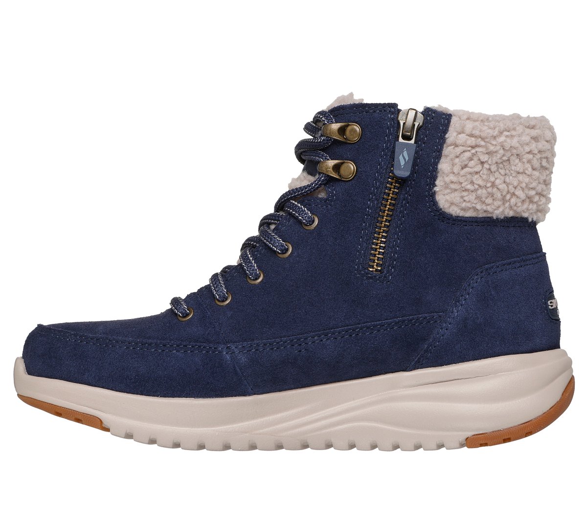 Stay warm throughout the season with Skechers Waterproof: On-the-GO® Stellar – Winterize. This waterproof lace-up boot features a genuine suede upper with a faux shearling collar and lining, Skechers Air-Cooled Goga Mat™ insole, and lightweight ULTRA GO® cushioning.