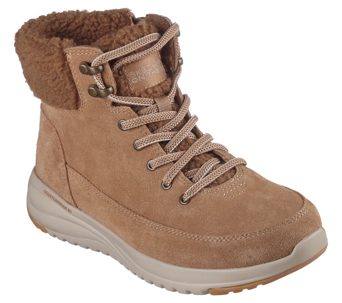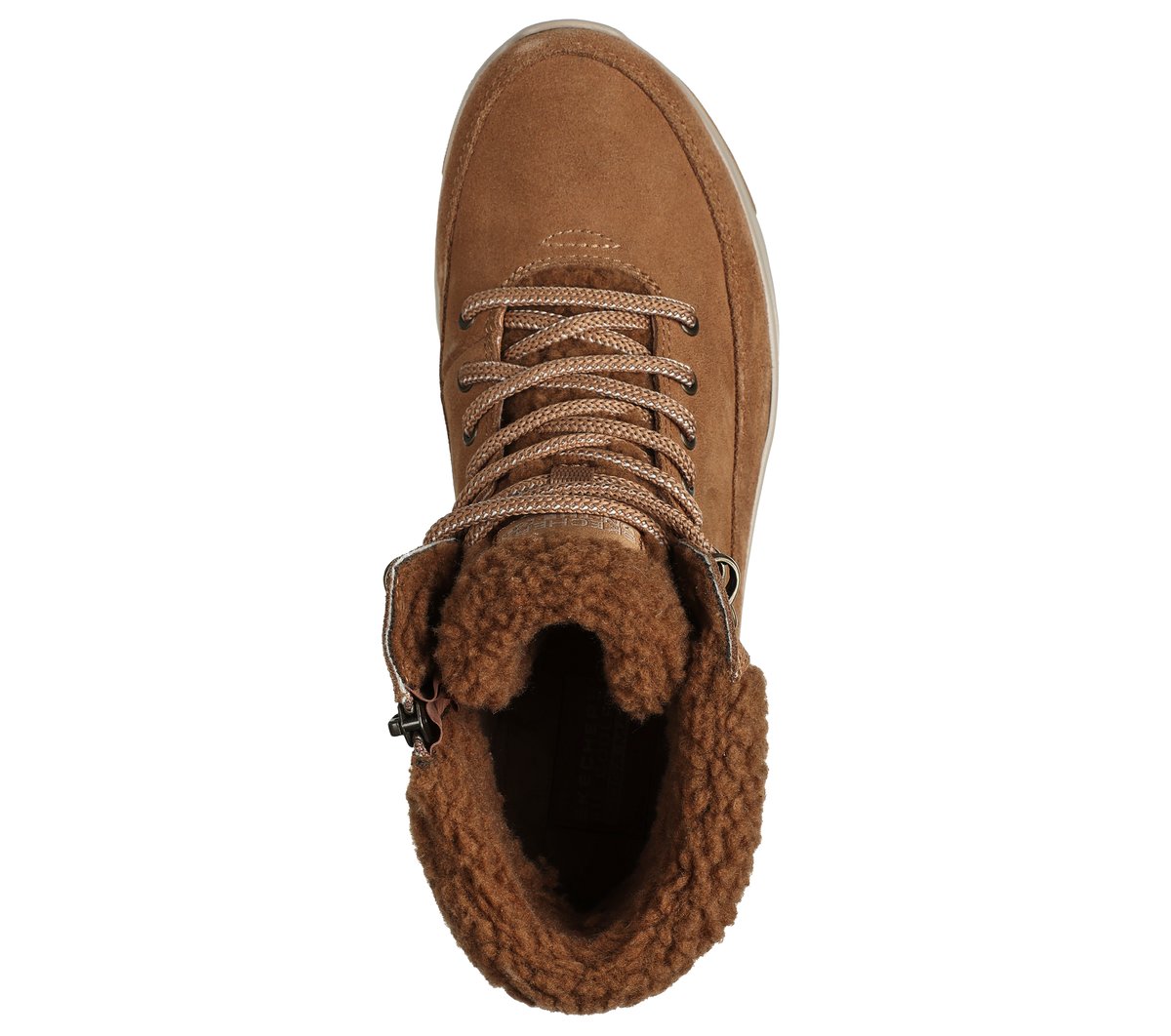 Stay warm throughout the season with Skechers Waterproof: On-the-GO® Stellar – Winterize. This waterproof lace-up boot features a genuine suede upper with a faux shearling collar and lining, Skechers Air-Cooled Goga Mat™ insole, and lightweight ULTRA GO® cushioning.