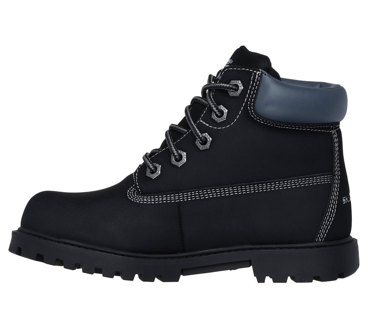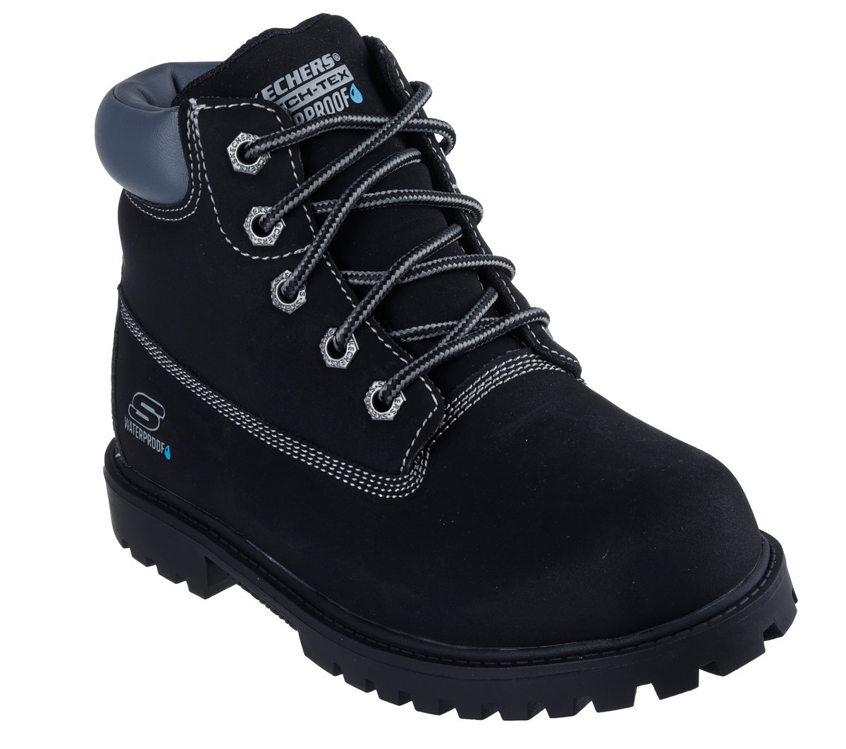 They’ll be all set for outdoor adventures wearing Skechers Power Reach. This 6-inch ‘lumber boot’ design features a waterproof faux-leather upper with a classic round-laced front, padded collar, and a cushioned comfort insole.