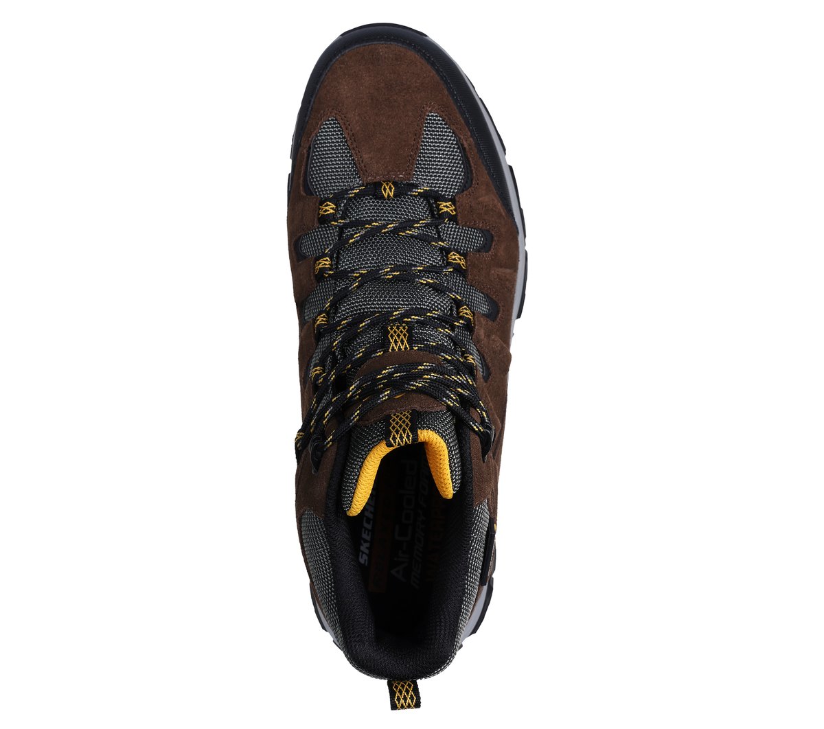 Head outdoors rain or shine wearing Skechers Waterproof Relaxed Fit®: Rickter – Branson. This waterproof trail hiking boot features a roomy leather and synthetic upper with a lace-up front and a Skechers Air-Cooled Memory Foam® insole.