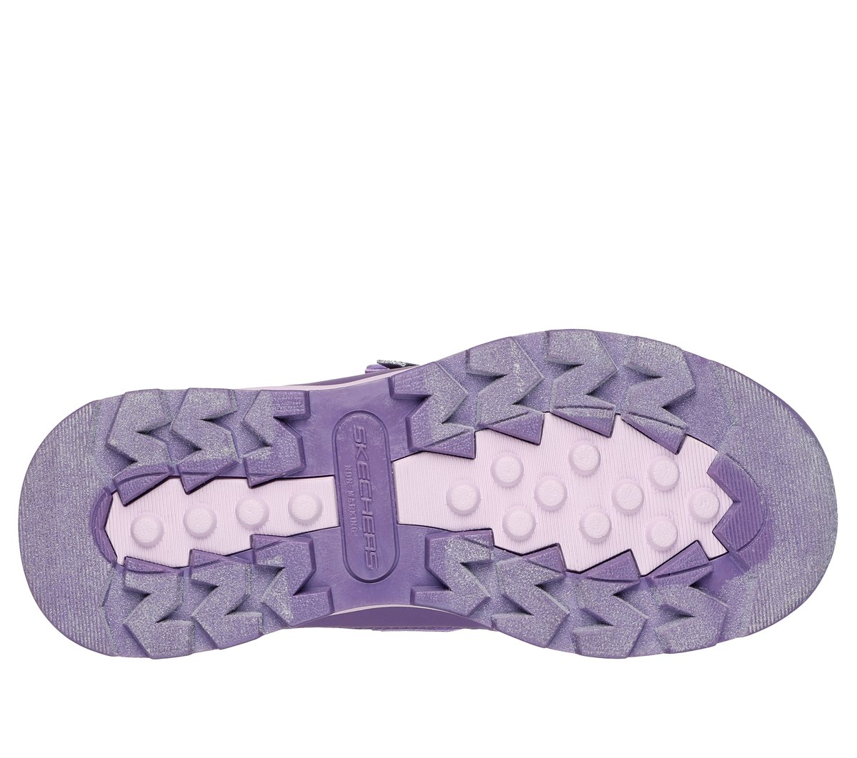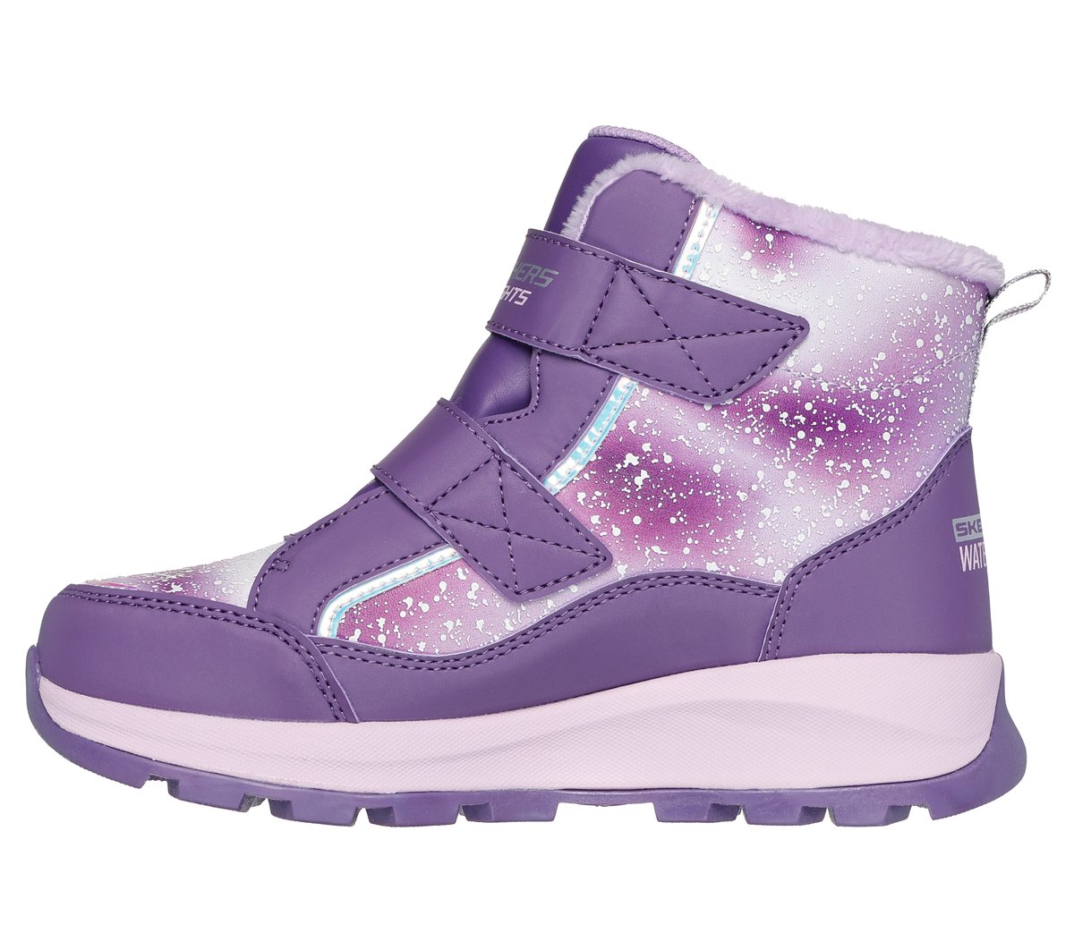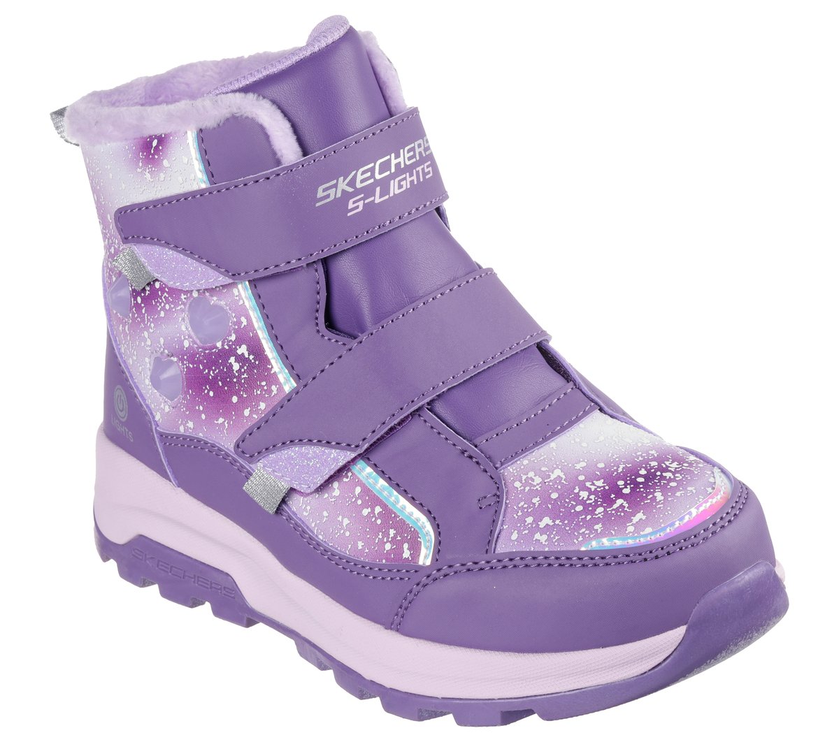 Let their feet stay dry from jumping puddles in Skechers Waterproof S-Lights®: Storm Blazer. This waterproof light-up mid-top features a synthetic upper with faux fur trim, dual adjustable instep straps, and a cushioned comfort insole.
