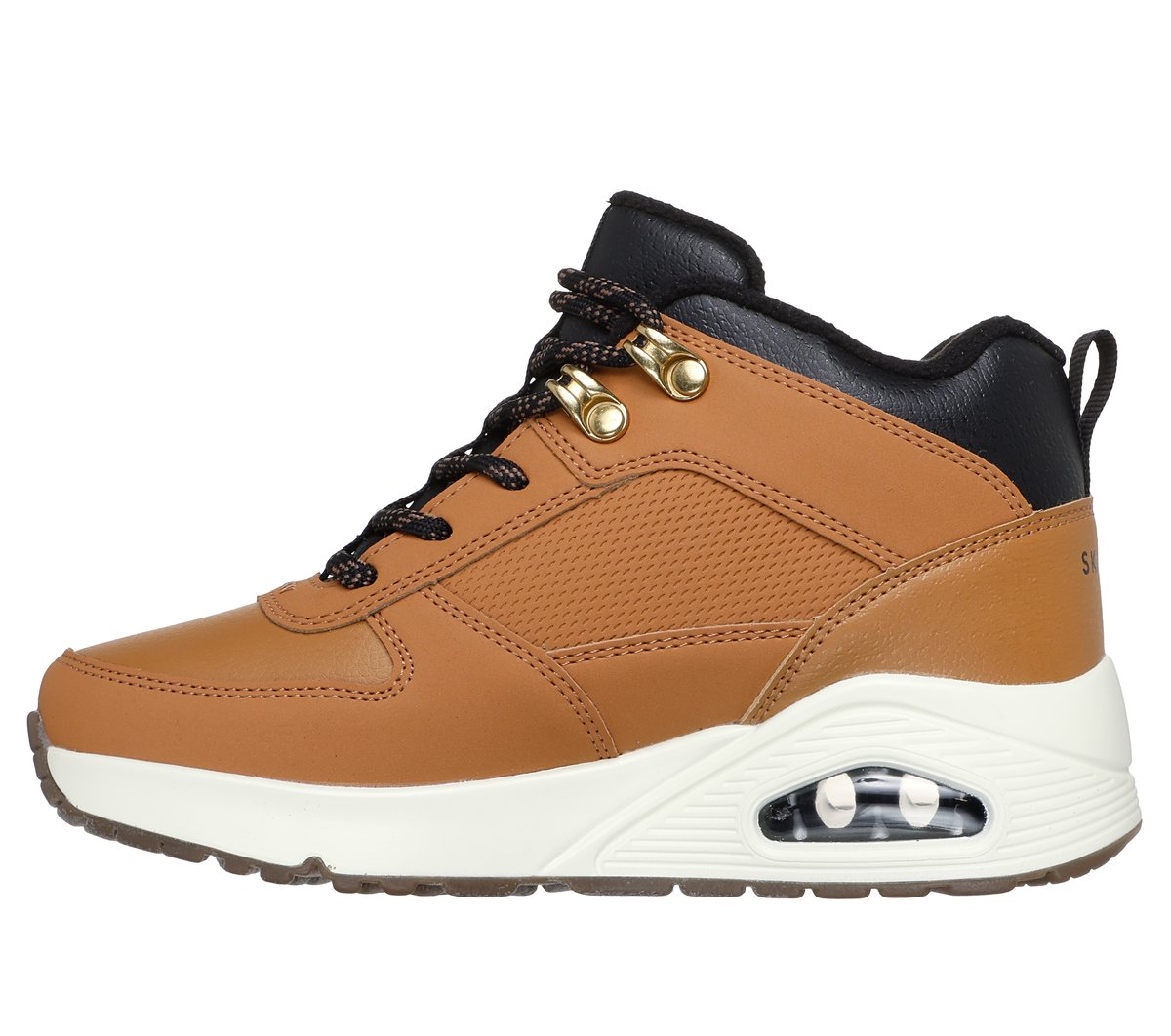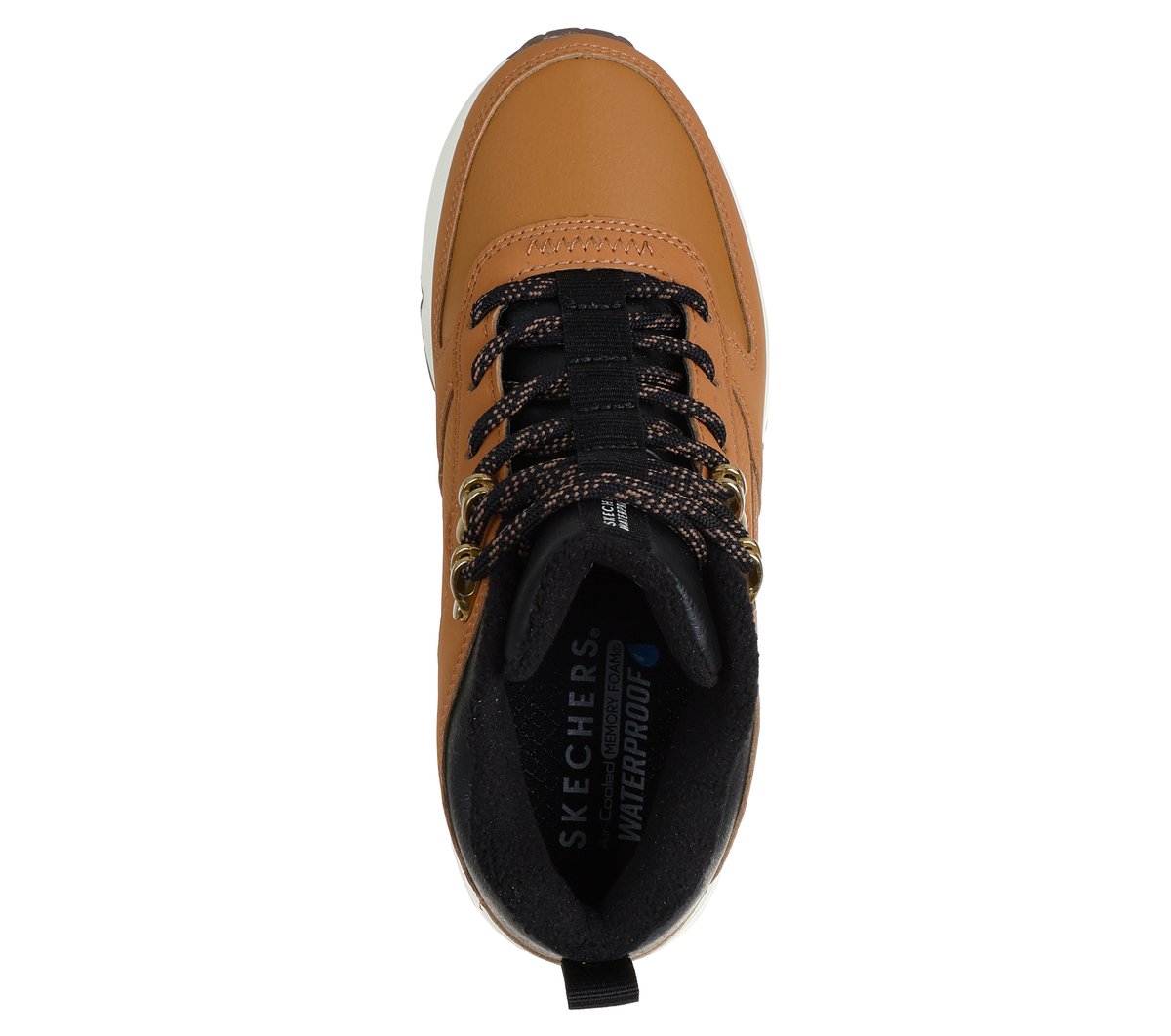 From sidewalk to puddles, keep their feet dry and comfy with Skechers Street™ Waterproof: UNO – Hydro Vista. This mid-top sneaker boot is fully waterproof and features a lace-up synthetic upper, a Skechers Air-Cooled Memory Foam® insole, and a visible Skech-Air® air-cushioned midsole.