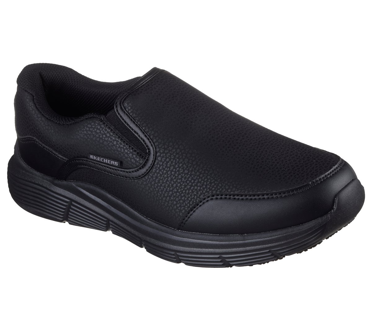Take on your shift with no worries about your feet wearing Skechers Work™: Corart. This laceless work design features a textured faux leather upper with twin gore panels for ease of wear, a well-cushioned midsole, slip-resistant traction outsole, and a cushioned Skechers Memory Foam™ insole.