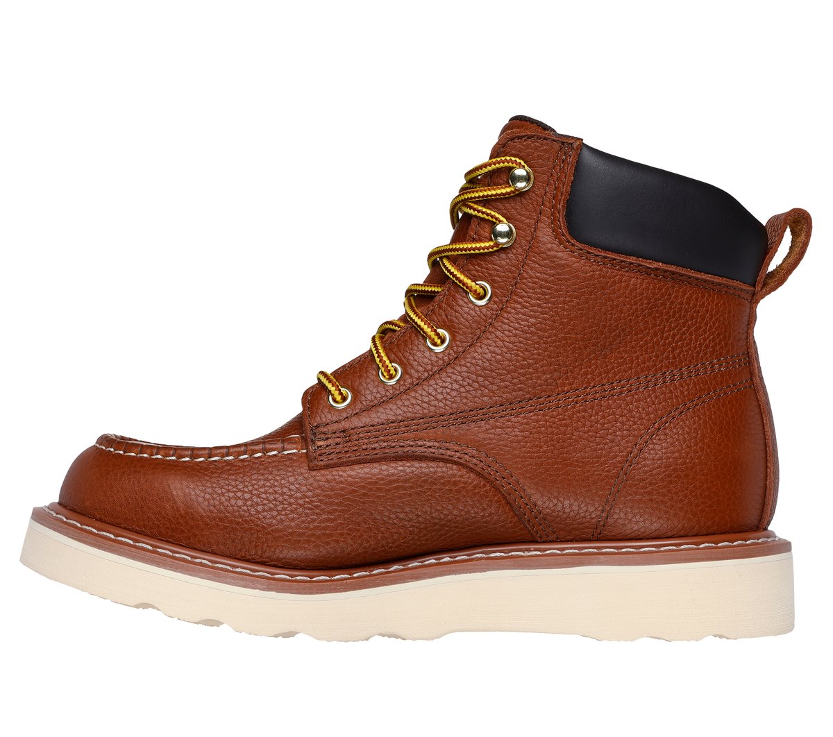 - Classic moc toe work boot design with a padded collar