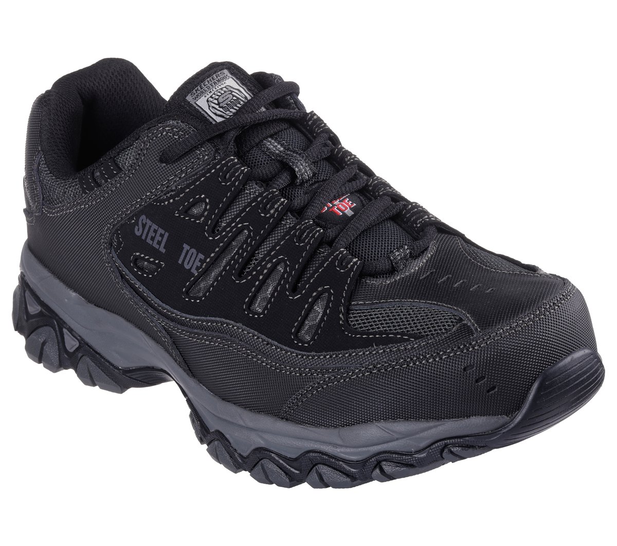 Outsmart every challenge in comfort wearing Skechers Work Relaxed Fit®: Cankton. This roomy work style features a duraleather, synthetic, and mesh underlay upper with a lace-up front, a steel safety toe, and cushioned Skechers Memory Foam™ insole.