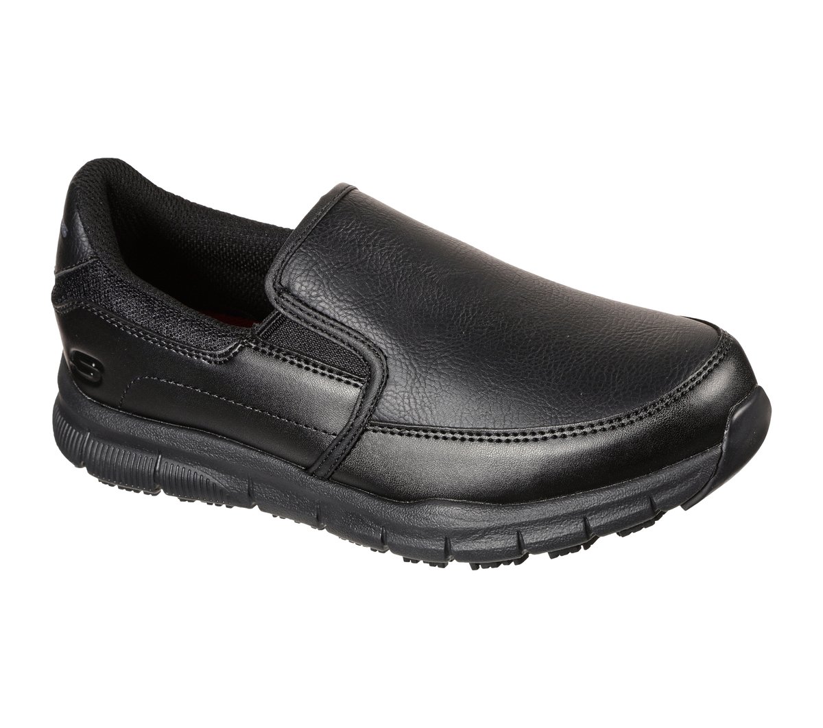Have a comfortable and safe day every day with Skechers Work Relaxed Fit®: Nampa – Annod SR. This slip-resistant design features a smooth synthetic leather upper in a laceless fit, twin-gore panels for ease-of-wear, and a cushioned Skechers Memory Foam™ insole.