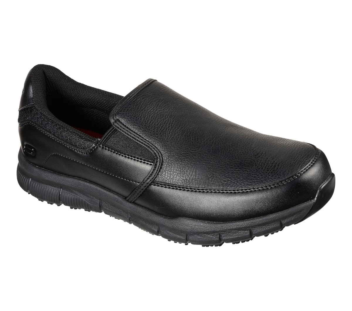 Work smarter and more comfortably in Skechers Work™ Relaxed Fit®: Nampa – Groton SR. This roomy slip-resistant design features a smooth synthetic upper in a laceless fit, twin gore panels for ease of wear, and a cushioned Skechers Memory Foam™ insole.