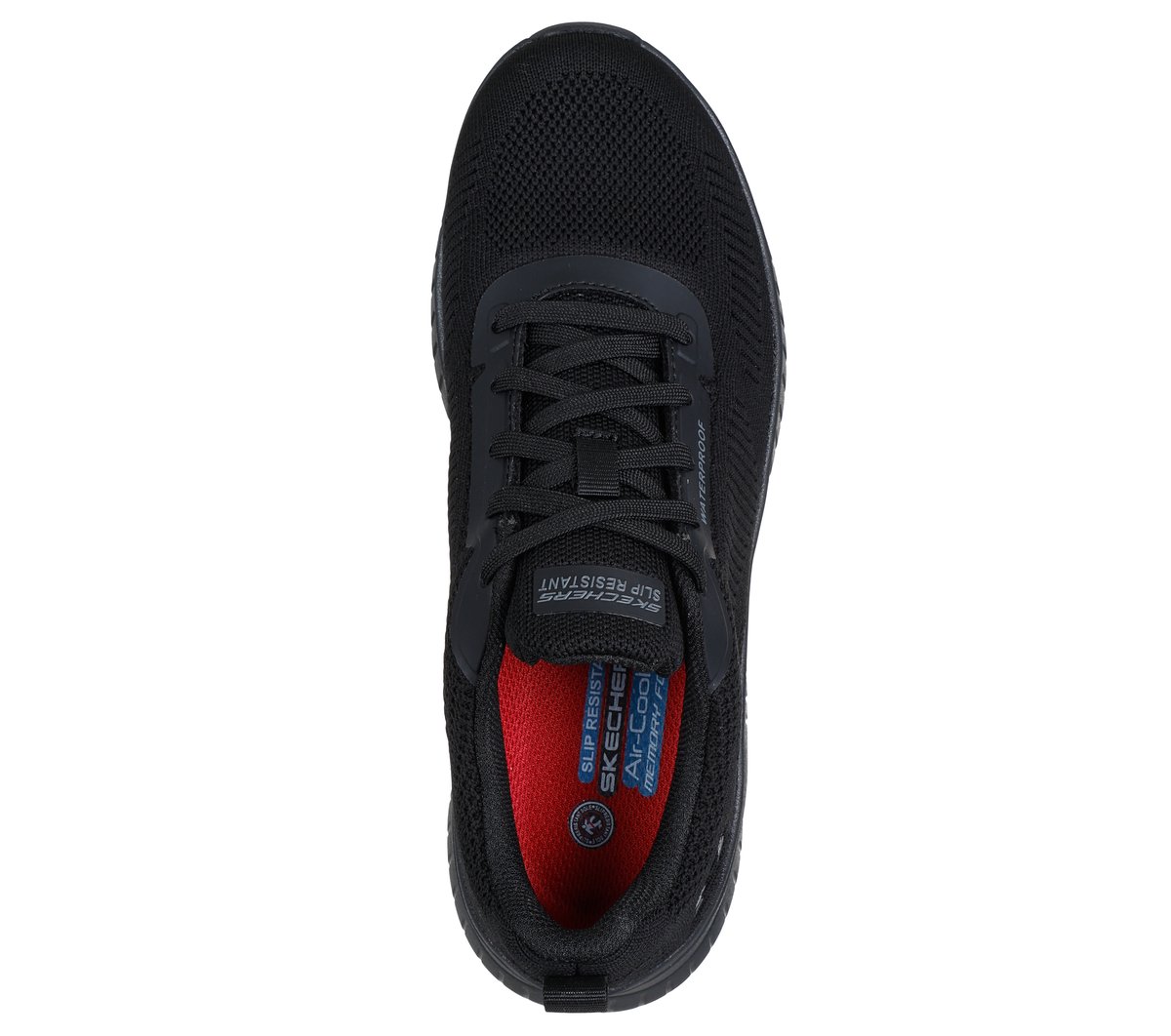 Stay safe and comfortable all day with Skechers Work™ Slip-Resistant Waterproof: Squad Chaos – Awoa. This waterproof athletic style features a roomy mesh and synthetic upper with a lace-up front, a slip-resistant outsole, and a cushioned Skechers Air-Cooled Memory Foam® comfort insole.