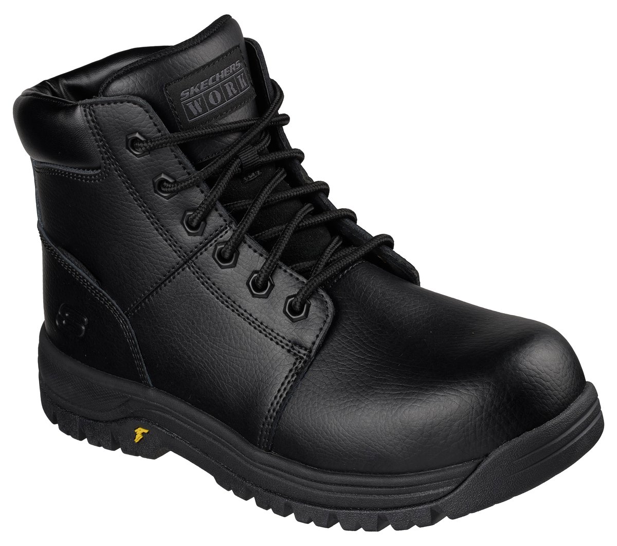 Gear up for your shift in exceptional traction and supportive comfort with Skechers Work™: Workshire 2.0. This slip-resistant lace-up boot features a high-top leather upper with a padded collar, a cushioned Skechers Air-Cooled Memory Foam® insole, a steel safety toe, and a highly durable Goodyear® Rubber Outsole.
